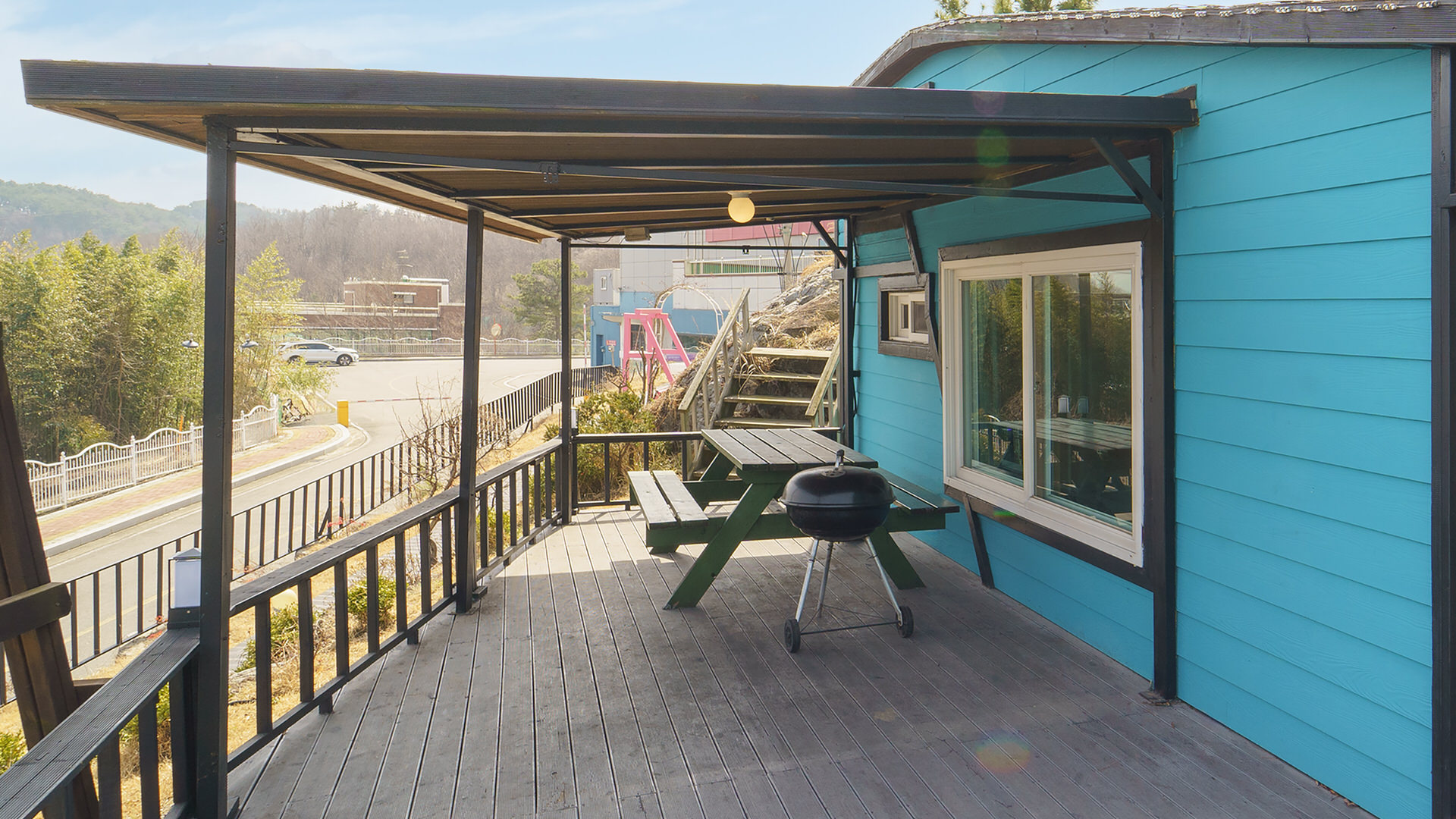 - 집기품목 : TV, 개별바비큐, 금연, 냉장고, 드라이기, 린스, 바디워시, 샴푸, 에어컨, 와이파이, 가스레인지, 전자레인지, 취사시설/도구, 커피포트, 타월, 테라스, 비누, VOD, 바다전망