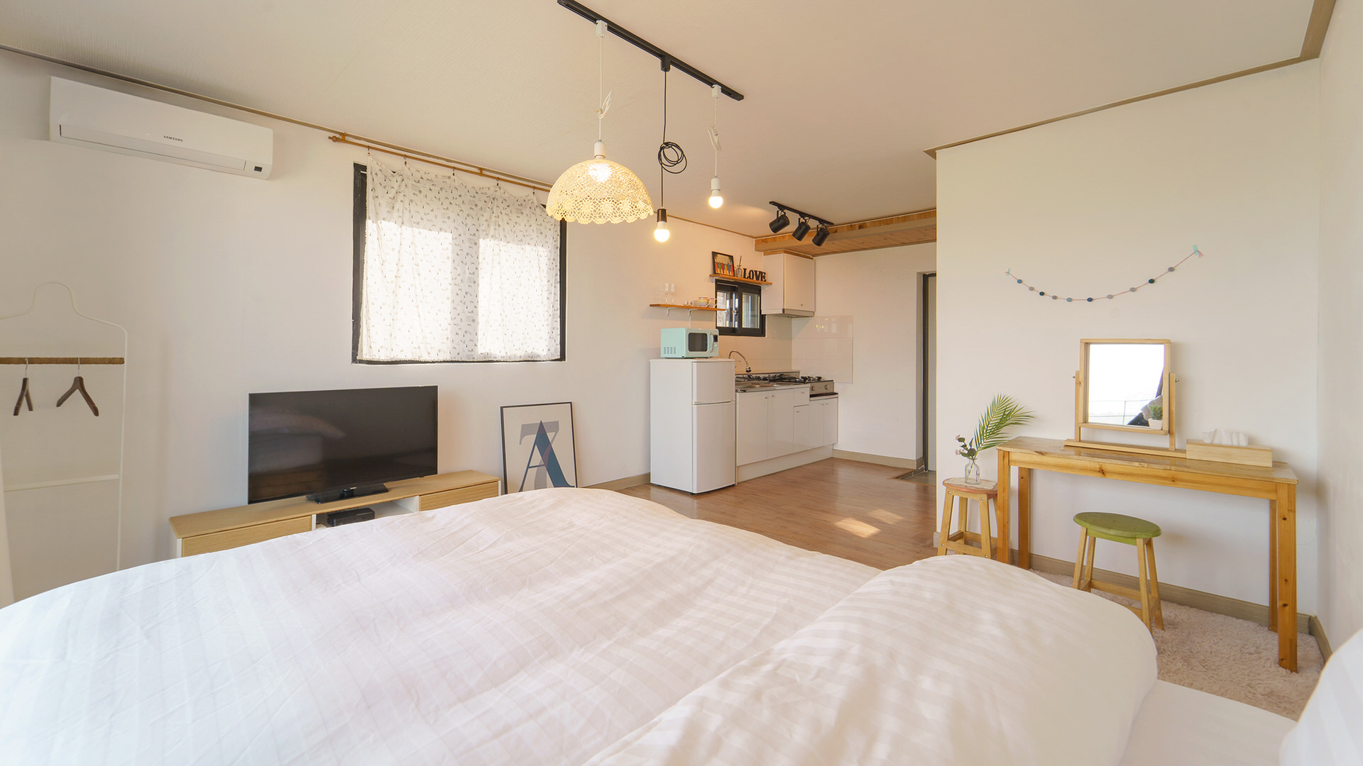 - 집기품목 : TV, 가스레인지, 개별바비큐, 금연, 냉장고, 드라이기, 린스, 바디워시, 샴푸, 에어컨, 와이파이, 인덕션, 전자레인지, 커피포트, 타월, 테라스, 취사시설/도구, 비누, VOD, 바다전망